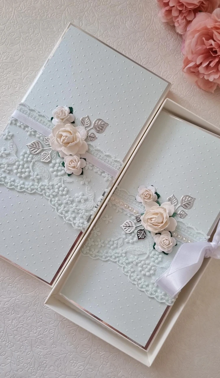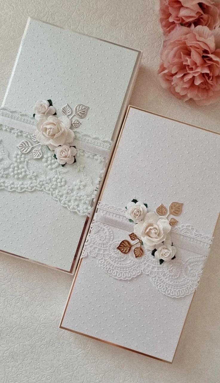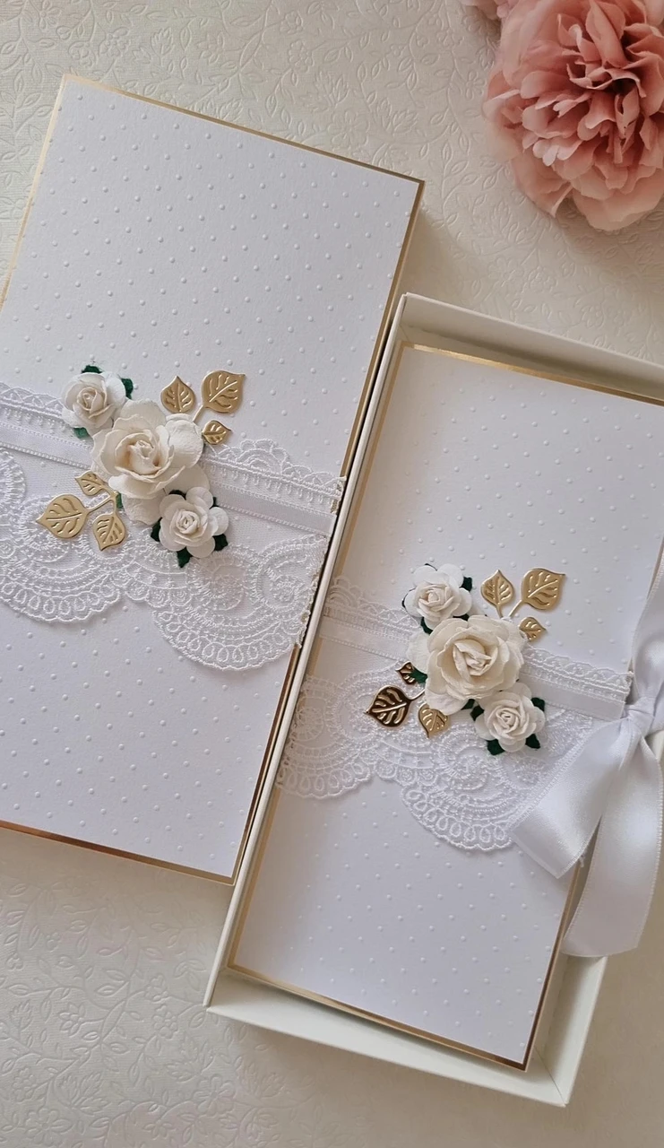 Luksuslik komplekt - käsitööna valminud rahakaart ja samas stiilis karp. Rõõmusta pruutpaari erilise käsitööga. Luksulik rahakaart karbiga rõõmustab nii kinkijaid kui ka kingituse saajaid.Disain 1